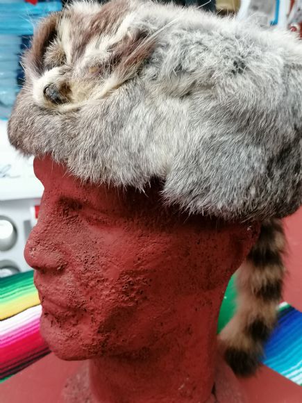 Cappello modello Trapper usato dal personaggio storico americano DAVID CROKETT dietro è inserita la coda del procione tutto il cappello trapper è in pelliccia nella parte anteriore è impressa il musetto del procione cappello Trapper originale U.S.A.Taglia Large