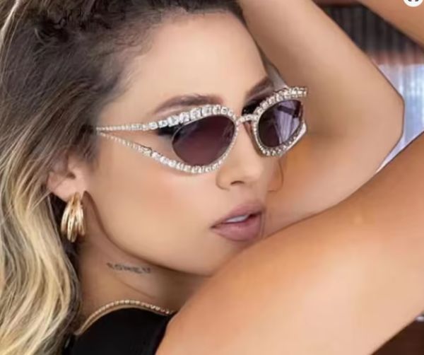 OCCHIALI DA SOLED CAT-EYE con diamanti imitazione telaio in metallo UV 400