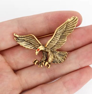 SPILLA AQUILA...In metallo dorato , gli occhi con piccole pietre rosse simile al rubino L'Aquila simboleggia forza e eleganza . Perfettamente in linea con l'estetica Western e Vintage .