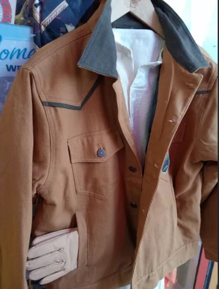 Giacca corta in tela occidentale con giogo occidentale e colletto a contrasto TAGLIE M L